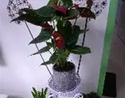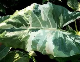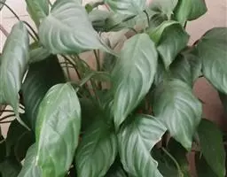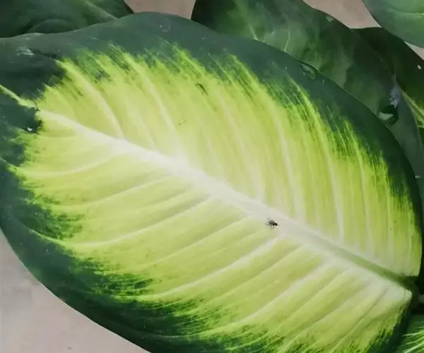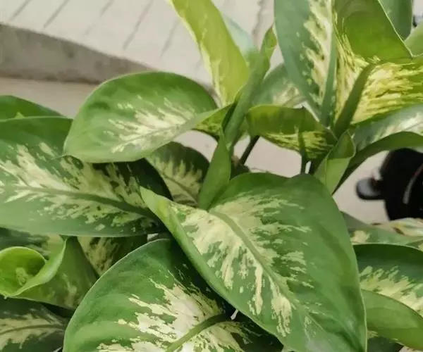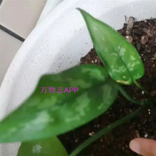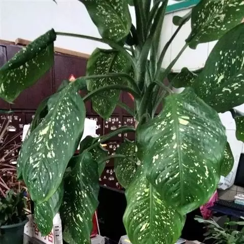 花叶万年青(学名:Dieffenbachia picta Lodd. )又名黛粉叶,为常绿灌木状草本,茎干粗壮多肉质,株高可达1.5米。叶片大而光亮,着生于茎干上部,椭圆状卵圆形或宽披针形,先端渐尖,全缘,长20-50厘米、宽5-15厘米;宽大的叶片两面深绿色,其上镶嵌着密集、不规则的白色、乳白、淡黄色等色彩不一的斑点,斑纹或斑块;叶鞘近中部下具叶柄。花梗由叶梢中抽出,短于叶柄,花单性,佛焰花序,佛焰苞呈椭圆形,下部呈筒状。其园艺品种甚多,不同的品种叶片上的花纹不同。