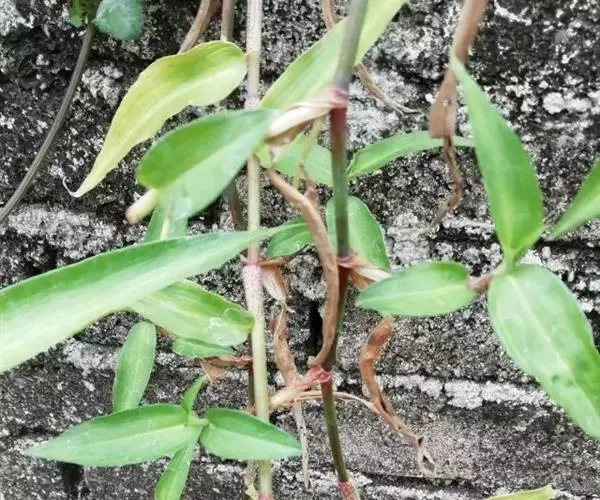 蕹菜 一年生草本,蔓生或漂浮于水。茎圆柱形,有节,节间中空,节上生根,无毛。