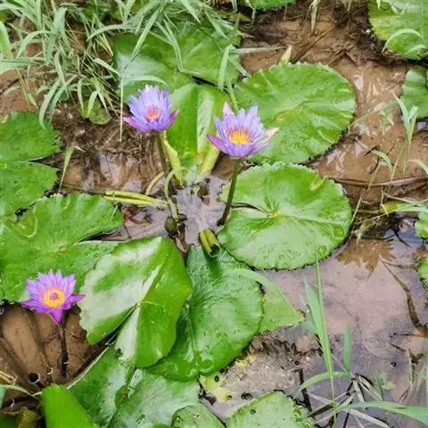 6月中、下旬芡苗圆盾状后生叶直径达25-30厘米时即可定植(每5千克种子的芡苗约可定植8-10亩大田)。定植前按2米(紫花苏芡)或2.3米(白花苏芡)见方的株行距(亩栽125-166株)开穴,穴挖成上面正方形(边长1.4米左右),下面锅底形,深15-20厘米。开穴时要清除杂草,并施入适量基肥,过1-2天待穴内泥水澄清后就可移苗定植。芡苗栽于穴的中心,深度以刚埋没根和地下茎高为度(心叶顶端必须露在土外),一般7-10天就可返青。湖荡种芡,定植前先按株行距栽茭草定点(俗称“栽潭草”),定植时可按潭草的位置扒塘和种芡。在芡叶直径有70厘米左右时,可把潭草全部拔掉。