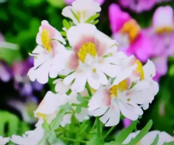 蛾蝶花由于其叶型优美,花色艳丽,花型似飞舞的蛾蝶,是极好的室内盆栽品种,加之花量大,性强健耐旱,是“五一”期间布置早春花坛的草花新秀。高生品种做切花或花境用花。