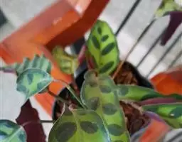 花叶竹芋:竹芋科,竹芋属匍匐状分枝草本植物,植株矮小,高可达40厘米,叶片长圆形、椭圆形至卵形,基…