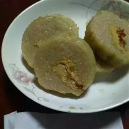 1.新鲜猪肉剁成肉糜,调入老抽、油、盐、葱末混合。和好面粉擀成包子皮,把馅料包入面粉皮中。
