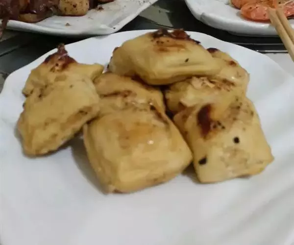烤包子主要是在馕坑烤制。包子皮用死面擀薄,四边折合成方形。包子馅用羊肉丁、羊尾巴油丁、洋葱、孜然粉(孜然,是新疆地产的一种香料,带有特殊的香味,可以提香去膻,是制作羊肉菜肴时的调味佳品)、精盐和胡椒粉等原料,加入少量水,拌匀而成。把包好的生包子贴在馕坑里,十几分钟即可烤熟,皮色黄亮,入口皮脆肉嫩,味鲜油香。
