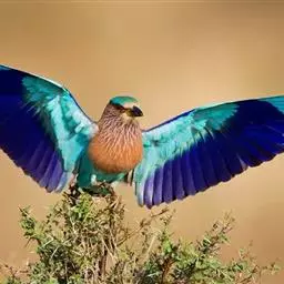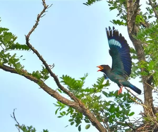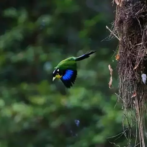 三宝鸟,是佛法僧目佛法僧科三宝鸟属中小型攀禽。成鸟通体为富有光泽的墨蓝绿色,…