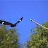 常栖于近林开阔地的枯树上纹丝不动,有人走近时,则立刻飞去,偶尔起飞追捕过往昆虫,或向下俯冲捕捉地面昆虫。飞行姿势似夜鹰,怪异、笨重,有时飞行缓慢,长长的双翼均匀而有节奏地上下摆动,有时又急驱直上,或者急转直下,胡乱盘旋或拍打双翅,并不断发出单调而粗厉的“嘎嘎”声。三两只鸟有时于黄昏一道翻飞或俯冲,求偶期尤是。有时遭成群小鸟的围攻,因其头和嘴使它看似猛禽。 [3-4]