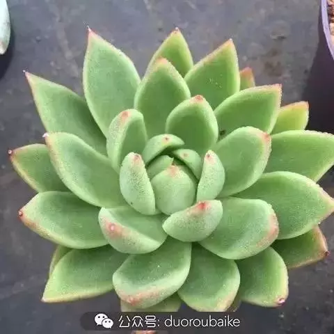 小红衣是景天科、拟石莲花属的一种多肉植物。叶片匙形,扁平细长,叶表具白粉,有明显的半透明边缘,…