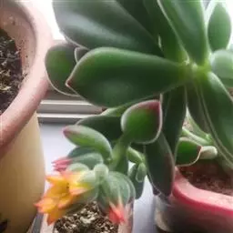 黑王子锦形似莲花,造型端庄雅致;叶片上的金色锦斑颜色通透,与乌黑油亮的叶片形成鲜明对比,令人眼前一亮。开出的花朵形如鲜红的铃铛,小巧精致,是一种花叶俱佳的多肉植物。加之株型较小的特点,非常适宜摆放在光照明亮、通风良好的居室内。