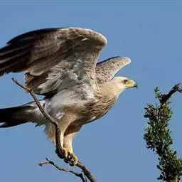 白肩雕:又名御雕,是大型猛禽。体长73-84厘米。体羽黑褐色,头和颈较淡,肩部有明显的白斑,在黑褐…