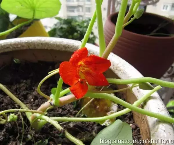 金莲花常用播种繁殖,也可用嫩枝扦插。一般于3月播种,7月至8月开花;6月播种,国庆节开花;9月播种,春节开花;12月播种,“五一”开花。播种先用40℃至45℃温水浸泡一夜后,将其点播在装有素沙的浅盆中,上覆细沙厚约1厘米,播后放在向阳处保持湿润,10天左右出苗,幼苗2片真叶时分栽上盆。扦插以春季室温13℃至16℃时进行,剪取有3片至4片叶的茎蔓,长10厘米,留顶端叶片,插入沙中,保持湿润,10天开始发根,20天后便可上盆。金莲花茎蔓生,必须立支架,当幼苗长到3片至4片真叶时进行摘心,使其多发侧枝,上架前除留主枝及粗壮侧枝外,还需摘心并均匀地绑缚在架上,扎成各种装饰形式。当茎蔓生长达30厘米至40厘米时,可用 100毫克/升多效唑叶面喷布,促使矮化。花后把老枝剪去,待发出新枝开花。对已经衰老的植株,当气温达10℃以上时,可在基部剪去上部枝叶,施入20%腐熟的人粪肥,放入7℃左右的温室内,促使重新发枝,形成新株丛。 金莲花栽培宜选用富含有机质的沙壤土 ,PH值 5至6。一般在生长期每隔3周至4周施一次10%至15%饼肥水,开花前改用半月施1次至2次鸡粪液肥或1%磷酸二氢钾,花后施25%饼肥水或者20%畜粪肥,秋末施一次30%全元素复合肥作越冬肥,每次施肥后要及时松土,改善通气性,以利根系发育。金莲花喜湿忌涝,土壤水分保持50%左右,生长期间浇水要采取小水勤浇的办法,春秋季节 2天至3天浇一次水,夏天每天浇一次水,并在傍晚往叶面上喷水一次,以保持较高的湿度,开花后减少浇水,防止枝条旺长。金莲花喜阳光充足,不耐荫蔽,春秋季节应放在阳光充足处培养,夏季适当遮阴,盛夏放在凉爽通风处,北方10月中旬入室,南方11月上旬入室,放在向阳处养护,室温保持10℃至15℃,适当控制肥水。另外生长过程中如发生蚜虫和白粉虱,要用吡虫灵、扑虱灵、敌杀死等无公害农药及时防治。