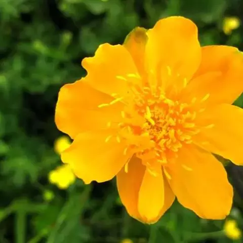 金莲花,别名:旱荷、旱莲花寒荷、陆地莲、旱地莲、金梅草、金疙瘩;学名:Trollius chinensis Bunge是毛茛科金莲花属的植物。一年生或多年生草本。株高30-100厘米。茎柔软攀附。叶圆形似荷叶,花形近似喇叭,萼筒细长,常见黄、橙、红色。有变种矮金莲,株形紧密低矮,枝叶密生,株高仅达30厘米,极适宜盆栽观赏,花期2-5月。是很好的装饰用花卉,也可构成窗景。具药用功能,可清热解毒,主治扁桃体炎、中耳炎,。用于急、慢性扁桃体炎,急性中耳炎,急性鼓膜炎,急性结膜炎,急性淋巴管炎。