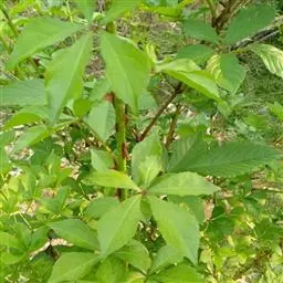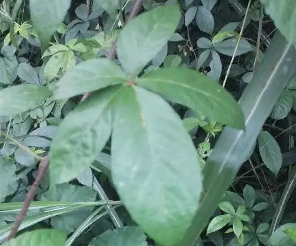 落叶灌木,有时蔓生状,高2-3米。茎直立或攀援,枝无刺或在叶柄基部单生扁平的刺。叶互生或簇生于短枝上;叶柄长4-9厘米,光滑或疏生有小刺,小叶无柄;掌状复叶,小叶5枚,稀3-4枚,中央1枚较大,两侧小叶渐次较小,倒卵形至披针形,长3-8厘米,宽1.5-4厘米,先端尖或短渐尖,基部楔形,边缘有钝细锯齿,两面无毛或仅沿脉上有锈色绒毛。