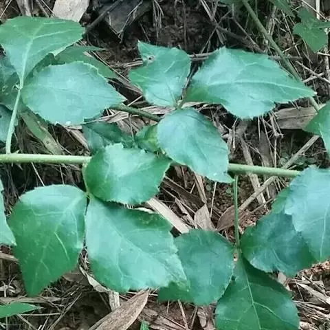 三年生以上的细柱五加可产生分生枝条,在春季萌芽后,新梢长至10厘米左右时进行压条繁殖。压条时应选取母株新梢较多的蔓条,并在母株旁挖15-20厘米深的坑,施入复合肥(15-15-15,总养分≥45%)10-15克/穴,将当年新生枝条固定压入穴中,先培土5厘米厚,将枝条竖直向上,当枝条长至15-20厘米时,再培土与地面平齐,秋季时将枝条剪离母株,挖出成一独立新株。