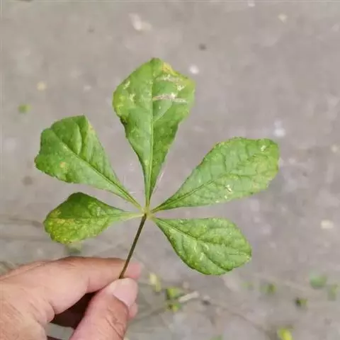五加木虱:成虫在床表落叶和土壤中越冬,翌年4月开始活动,5月上中旬产于叶片正面主脉两侧,5月中旬若虫卵孵化并蛀到叶肉或嫩茎表皮内吸汁液,被害部形成大小不等虫瘿和瘿瘤,导致叶片脱落,影响新梢生长。生产上应在6月中下旬摘除带有瘿瘤的叶片和新梢;若虫期喷洒1.2%苦参碱乳液1000倍液防治。