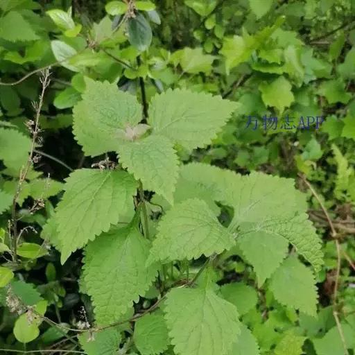 茎呈方柱形,上部多分枝,长20-50cm,直径约2mm;表面灰绿色或灰棕色,四面凹下成纵沟,密被倒向的柔毛;质脆易折断,断面木部窄,黄棕色,髓部大,白色。叶对生,灰绿色,多皱缩,破碎,完整叶片展平后呈卵形,卵状披针形,长3-7cm,宽1.5-4cm,边缘具粗锯齿,先端渐尖,基部楔形,两面有柔毛;叶柄长0.2-2.5cm。气微,味苦。