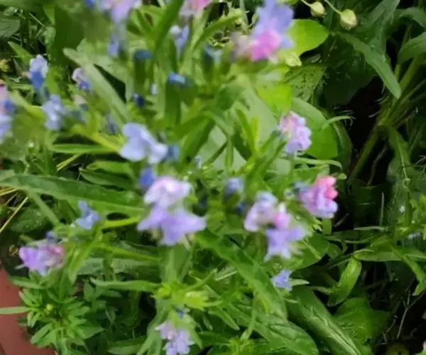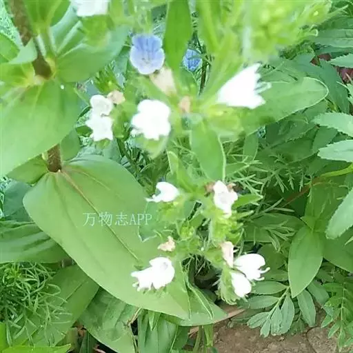 二年生草本。茎高达100厘米,有开展的长硬毛和短密伏毛,通常多分枝。基生叶和茎下部叶线状披针形,长可达12厘米,宽可达1.4厘米,基部渐狭成短柄,两面有长糙伏毛;茎上部叶较小,披针形,无柄。花序狭长,花多数,较密集;苞片狭披针形,长4-15毫米;花萼5裂至基部,外面有长硬毛,裂片披针状线形,长约6毫米,果期增大至10毫米;花冠斜钟状,两侧对称,蓝紫色,长约1.2厘米,外面有短伏毛,檐部不等浅裂,上方1个裂片较大;雄蕊5,花丝长1-1.2厘米,花药短,长圆形,长约0.5毫米;花柱长约1.4厘米,顶端2裂,柱头顶生,细小。小坚果卵形,长约2.5毫米,表面有疣状突起,着生面居果的基部。