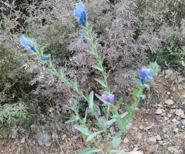 蓝蓟(学名:Echium vulgare L.)是紫草科、蓝蓟属二年生草本植物。茎高达100厘米,通常多分枝。基生叶和茎下部叶线状披针形,两面有长糙伏毛;花序狭长,花多数,较密集;苞片狭披针形,长4-15毫米;花萼5裂至基部,外面有长硬毛,裂片披针状线形,长约6毫米,果期增大至10毫米;花冠斜钟状,两侧对称,蓝紫色,外面有短伏毛,花药短,长圆形,柱头顶生,细小。小坚果卵形。