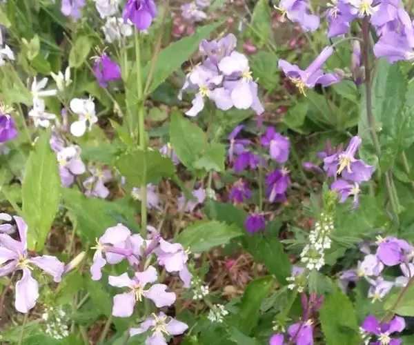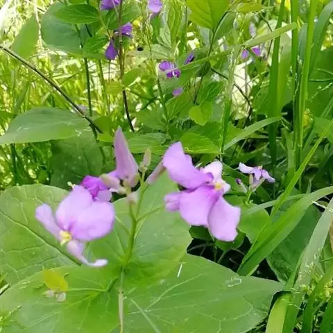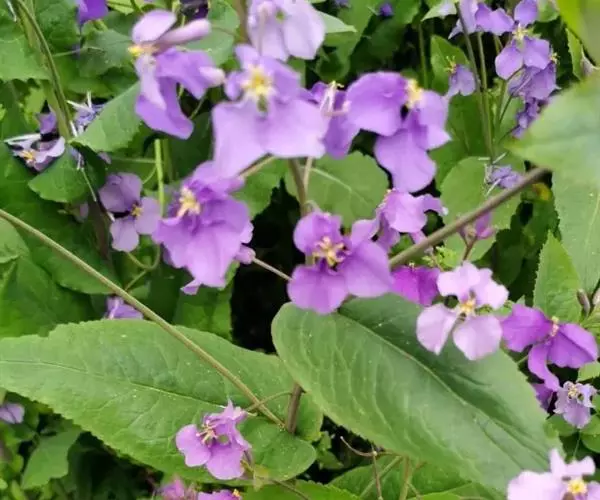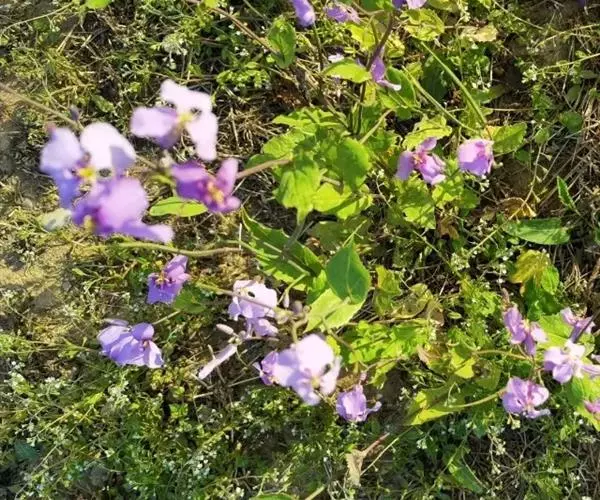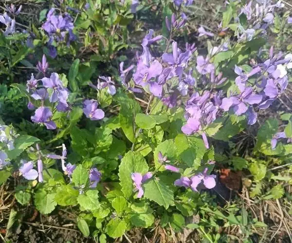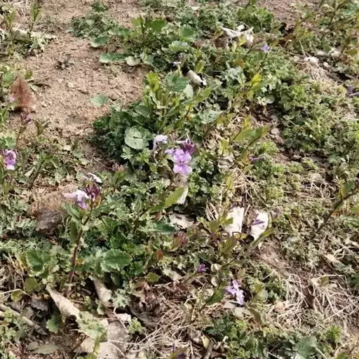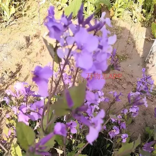 紫色的诸葛菜花 田间管理间苗与补苗:直播苗可在苗高8-10厘米时间苗,株距10-15厘米。移植苗在移栽1周后检查移栽苗成活情况,如有缺苗要及时补栽。