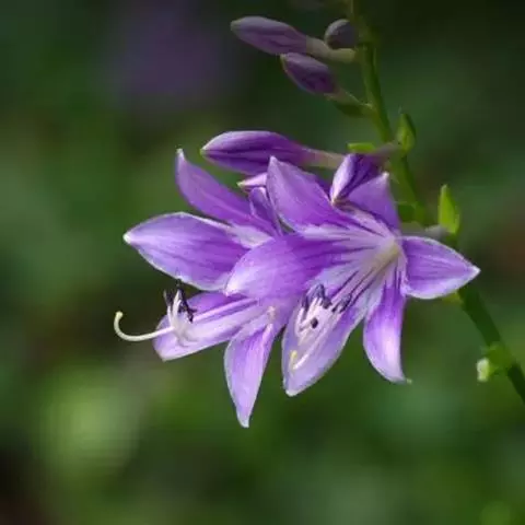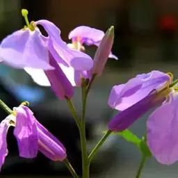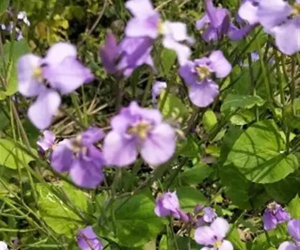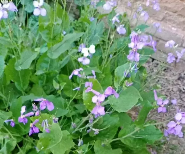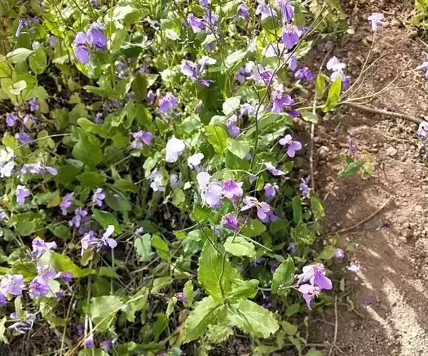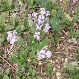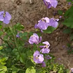 花紫色、浅红色或褪成白色,直径2-4厘米;花梗长5-10毫米;花萼筒状,紫色,萼片长约3毫米;花瓣宽倒卵形,长1-1.5厘米,宽7-15毫米,密生细脉纹,爪长3-6毫米。长角果线形,长7-10厘米。具4棱,裂瓣有1凸出中脊,喙长1.5-2.5厘米;果梗长8-15毫米。种子卵形至长圆形,长约2毫米.稍扁平,黑棕色,有纵条纹。花期4-5月,果期5-6月。