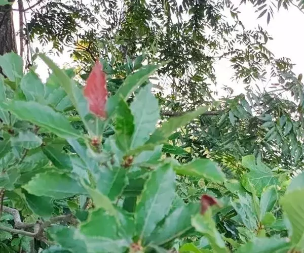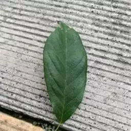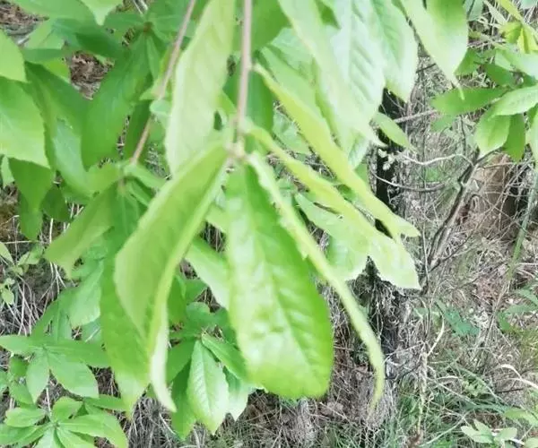 叶片薄革质,倒卵形或倒卵状椭圆形,长7-17厘米,宽3-9厘米,顶端渐尖或急尖,基部楔形或近圆形,叶缘有腺状锯齿,幼时被伏贴单毛,老时及叶背被平伏单毛或无毛,侧脉每边7-12条;叶柄长1-3厘米,无毛。