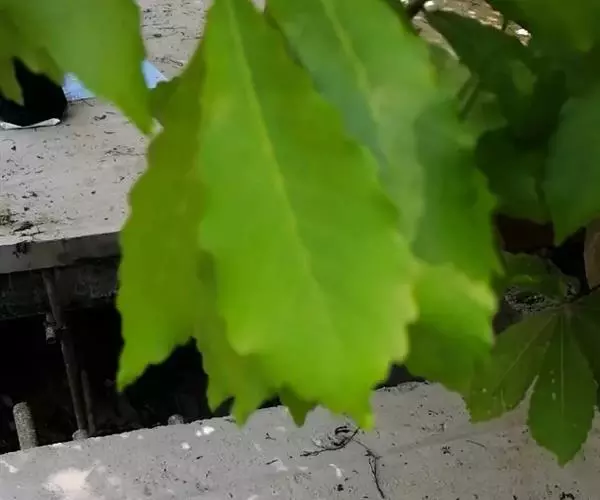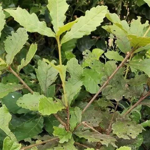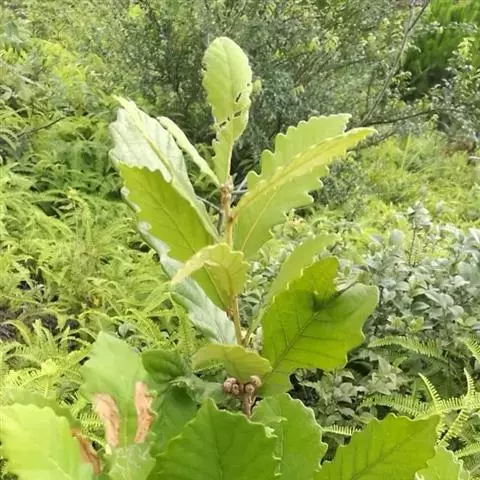 绒毛枹栎Quercus serrata var. tomentosa,本变种与原变种不同处,小枝、叶柄、叶背密生星状绒毛。