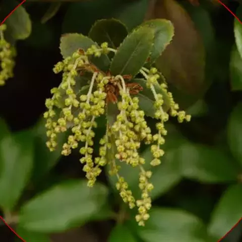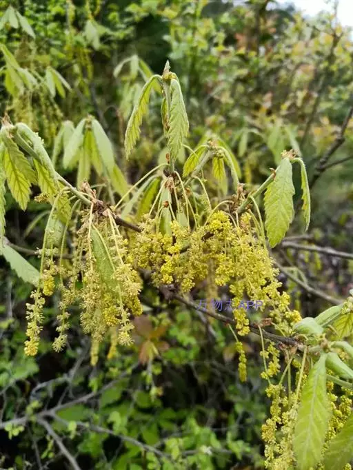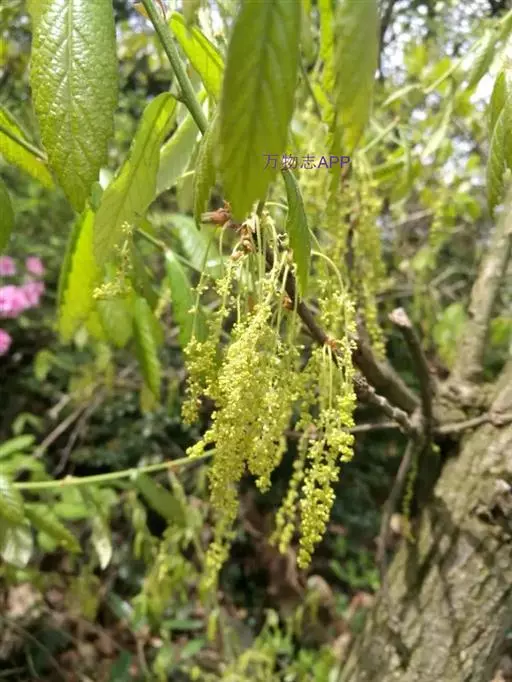 雄花序长8-12厘米,花序轴密被白毛,雄蕊8;雌花序长1.5-3厘米。壳斗杯状,包着坚果1/4-1/3,直径1-1.2厘米,高5-8毫米;小苞片长三角形,贴生,边缘具柔毛。