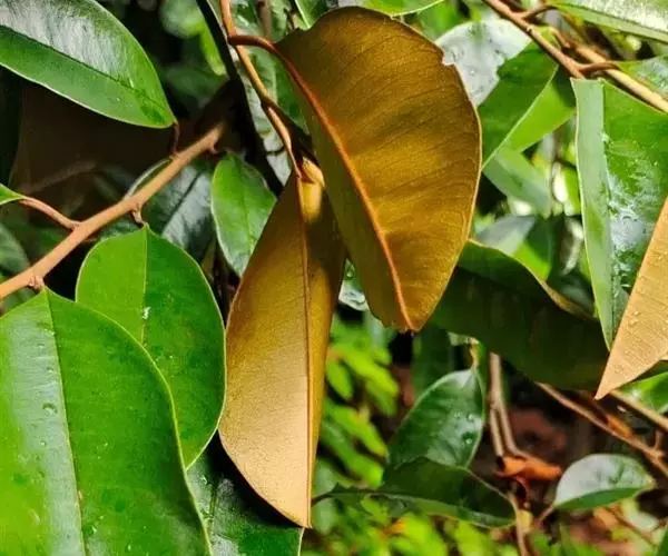 叶长椭圆形或披针形,稀卵形,长7-15厘米,宽2-5厘米,稀更短或较宽,顶部短尖或渐尖,基部近于圆或宽楔形,有时一侧稍短且偏斜,全缘或有时在近顶部边缘有少数浅裂齿,或二者兼有,中脉在叶面凹陷或上半段凹陷,下半段平坦,侧脉每边11-15条,支脉通常不显,或隐约可见,叶背的蜡鳞层颇厚且呈粉末状,嫩叶的为红褐色,成长叶的为黄棕色,或淡棕黄色,很少因蜡鳞早脱落而呈淡黄绿色;叶柄长1-2厘米,嫩叶叶柄长约5毫米。