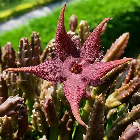 大花犀角是夹竹桃科犀角属的多年生肉质草本植物,茎基部分枝,有齿状突起,灰绿色,形如犀牛角,花大,…