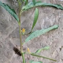 豆茶决明(学名:Cassia pumila Lam.)是豆科,决明属多年生亚灌木状披散草本植物,高可达75厘米,枝条、叶柄、叶轴疏柔毛。小叶对生,线状镰形,顶端有小凸尖,基部近圆形;托叶线状锥形,花腋生,总状花序;总花梗顶端有小苞片;萼片卵状长圆形,顶端渐尖,花瓣黄色,卵形,花药长圆形;子房无柄,荚果扁平而直,8-9月开花;10-12月结果。