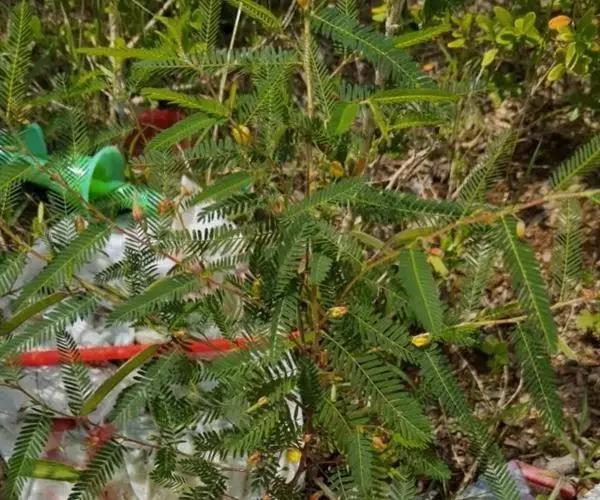 含羞草决明是豆科,决明属多年生亚灌木状披散草本植物,高可达75厘米,枝条、叶柄、叶轴疏柔毛。小叶对…