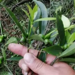 叶对生,稀互生,纸质,卵形或卵状披针形至椭圆状长圆形,长3-4厘米,宽1-2厘米,先端急尖或短渐尖,基部宽楔形或钝圆形,边缘全缘,上面绿色,干燥后黑褐色,下面淡绿色,干燥后黄褐色,幼时密被绢状黄色柔毛,老时则仅叶脉基部散生绢状黄色柔毛,侧脉5-7对,在下面较上面显著;叶柄短或几无,长约2毫米,具灰色柔毛。