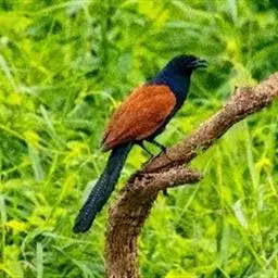 褐翅鸦鹃,是鹃形目鸦鹃科鸦鹃属的鸟类。褐翅鸦鹃的身体为黑色;头颈和胸带蓝紫色金属光泽并具黑亮的羽干纹,…