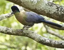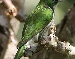 绿嘴地鹃:体形似小鸦鹃,但羽色大致绿灰;嘴绿色,头侧眼的周围有一裸区;后爪弯曲。虹膜赤红色,…