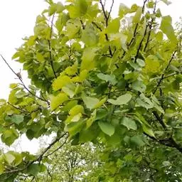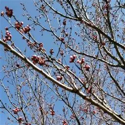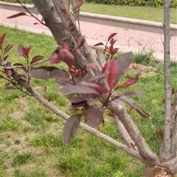 落叶乔木,高9-12米;树冠广圆形,树皮灰褐色,起伏不平;老枝紫褐色或红褐色,无毛;小枝黄红色,无毛;冬芽卵圆形,红紫色,有数枚覆瓦状排列鳞片,通常无毛,稀鳞片边缘有极稀疏毛。