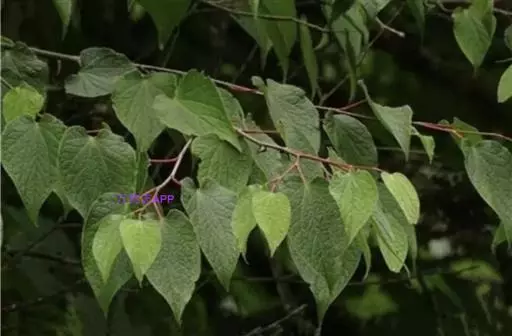乔木,高可达30米,胸径达1.5米,全株无毛; 水青树 树皮灰褐色或灰棕色而略带红色,片状脱落;长枝顶生,细长,幼时暗红褐色,短枝侧生,距状,基部有叠生环状的叶痕及芽鳞痕。叶片卵状心形,长7-15厘米,宽4-11厘米,顶端渐尖,基部心形,边缘具细锯齿,齿端具腺点,两面无毛,背面略被白霜,掌状脉5-7,近缘边形成不明显的网络;叶柄长2-3.5厘米。