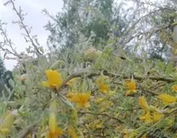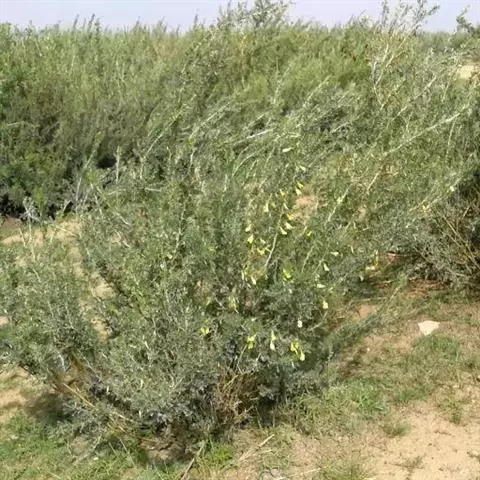 灌木,高0.4-1米。树皮绿褐色或灰褐色,小枝细长,具条棱,托叶在长枝者成细针刺,长3-4毫米,短枝者脱落;叶柄长5-10毫米,脱落或宿存成针刺;叶假掌状;小叶4,楔状倒卵形,长1-2.5厘米,宽4-12毫米,先端圆钝或微凹,具刺尖,基部楔形,近革质,上面深绿色,下面淡绿色,无毛,有时小叶边缘、小叶柄、小叶下面沿脉被疏柔毛。