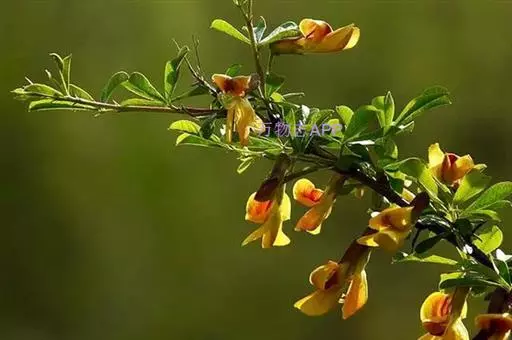 红花锦鸡儿枝繁叶茂,花冠蝶形,黄色带红,形似金雀,花、叶、枝可供观赏,园林中可丛植于草地或配植于坡地,山石旁,或作地被植物。
