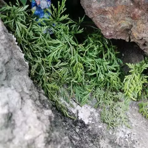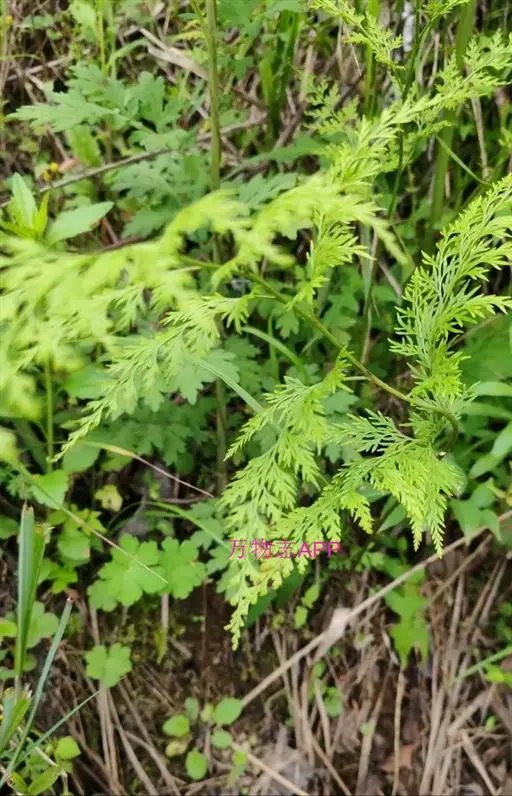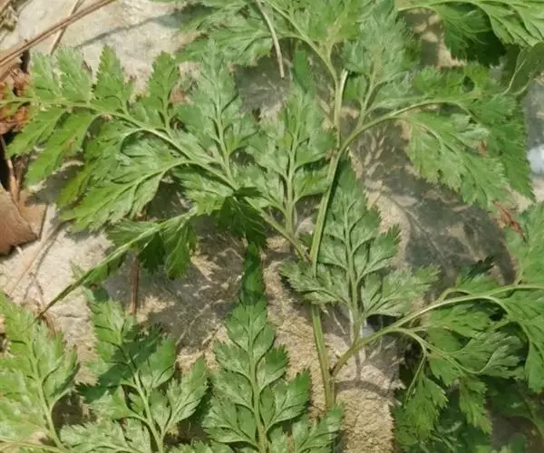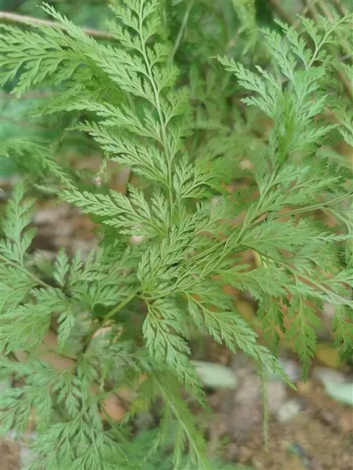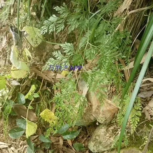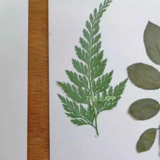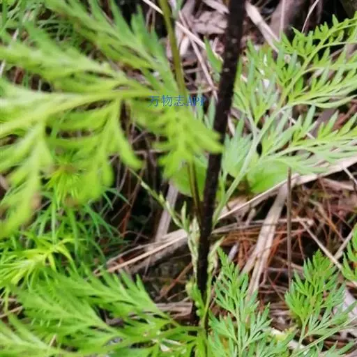 植株高60厘米 1-7 左右。根状茎长而横走,粗3毫米左右,疏被鳞片,鳞片棕色或红棕色,披针形,筛孔明显。叶散生;柄长2-30厘米,基部褐棕色,略有鳞片,向上禾杆色(有时下部略饰有棕色),光滑;叶片几和叶柄等长,宽约10厘米或过之,卵状三角形或卵状披针形,渐尖头,四回羽状细裂;羽片12-15对,互生,柄长1-2厘米,基部一对最大,长9-17厘米,宽5-6厘米,长圆披针形或三角状披针形,先端渐尖,并具羽裂尾头,三回羽裂;各回小羽片彼此接近,均为上先出,照例基部一对最大;末回能育小羽片或裂片长5-7毫米,宽1.5-2毫米,线状披针形,有不育的急尖头;末回不育裂片短而狭,线形或短披针形,短尖头;叶轴和各回育轴上面有浅沟,下面凸起,不育裂片仅有中脉一条,能育裂片有斜上侧脉和叶缘的边脉汇合。叶干后坚草质或纸质,灰绿色或绿色,遍体无毛。孢子囊群长(3)5-6毫米;囊群盖线形或短长圆形,膜质,灰白色,全缘。
