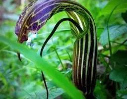 花序柄近圆柱形,常5-8枚并列于同一叶柄鞘内,先后抽出,长30-80厘米,粗1-2厘米,每一花序柄围以1枚鳞叶;鳞叶膜质,披针形,渐尖,长与花序柄近相等,展平宽3厘米,背部有2条棱凸。佛焰苞长12-24厘米:管部绿色,椭圆状,长3-6厘米,粗1.5-2厘米,席卷;檐部长8-19厘米,粉白色,长圆形或椭圆状长圆形,基部兜状,舟形展开,直径2-3厘米,锐尖,直立。肉穗花序长9-20厘米,雌花序圆锥状,奶黄色,基部斜截形;不育雄花序长圆锥状,长3-4.5厘米,下部粗1-2厘米;能育雄花序长5-14厘米,雄花棱柱状,长4毫米,雄蕊4,药室长圆柱形。附属器极短小,锥状,长1-5毫米。浆果圆柱形,长5毫米,种子多数,纺锤形,有多条明显的纵棱。花期4-6月,果9月成熟。