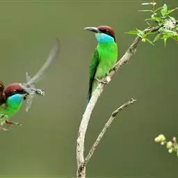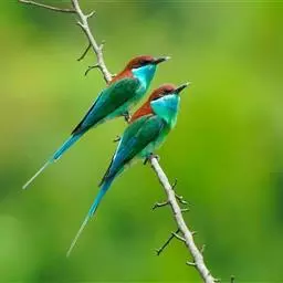 • 蓝颊蜂虎:是蜂虎科、蜂虎属的鸟类,共有2个亚种。体长27-33厘米,翼展46-49厘米,…