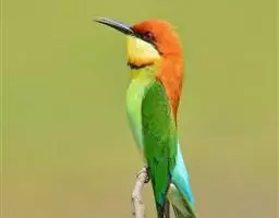 • 栗喉蜂虎是蜂虎科蜂虎属的鸟类。有热带鸟类羽毛艳丽的特征:喉部是栗红色的,黑色的过眼纹,…