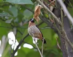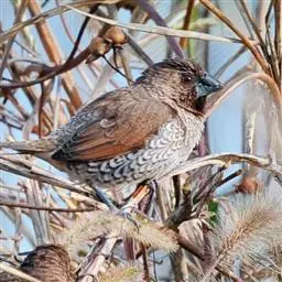 栗腹文鸟:小型鸟类,体长10-12厘米。嘴蓝灰色,基部粗厚,先端尖、呈圆锥状, 脚亦为蓝灰色,整个…