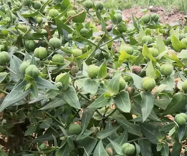 续随子开花结果期较长,种子成熟期很不一致,一般在85~90%的果粒变黑褐色时及时进行采收。用刀割取整株或取有果实的枝丫集中晒干、脱粒、扬净后,再继续将种子晒干进仓存储或销售。