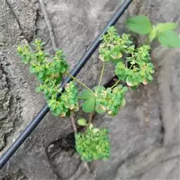 续随子植株较强健、株高1m左右,茎叶挺拔浓绿;蒴果近球形(果期7~8月),较小,表面有褐黑双色斑纹。真是草姿美丽,有一定观赏价值,可作花坛背景培植或自然式庭院培植用。作为观赏植物栽培。