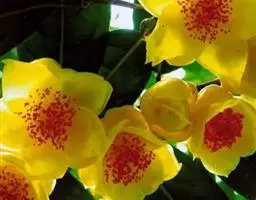 金花茶 Sealy)是山茶科山茶属植物。常绿灌木。叶革质,长圆形或披针形,基部楔形,上面深绿色,发亮,…