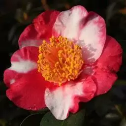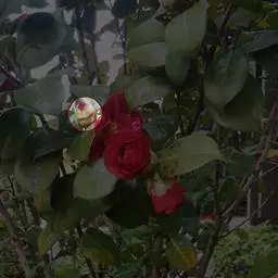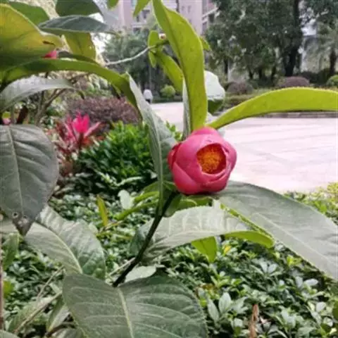 山茶(学名:Camellia japonica L. ):是双子叶植物纲山茶科植物。灌木或小乔木,高9米,嫩枝无毛。叶革质,椭圆形,先端略尖,基部阔楔形,上面深绿色,干后发亮,无毛,下面浅绿色。花顶生,红色,无柄;苞片及萼片约10片,花瓣6-7片,外侧2片近圆形。蒴果圆球形,直径2.5-3厘米,2-3室,每室有种子1-2个,3爿裂开,果爿厚木质。花期1-4月。