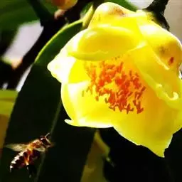 中国分布的大量白花油茶、红花油茶和各种山茶,花期分别为9月-11月、10月至翌年4月,是冬季、春季主要的蜜源植物,而且具有花期长、蜜质香甜的特点。油茶花粉粒近球形,直径38.1微米×45.6微米,具在孔沟。花蜜丰富,常年中国蜂每群可采茶花蜜5-10kg。山茶蜜琥珀色,浓稠,味芳香,为优质蜜。但因油茶蜜中含有聚糖,在天气干旱又缺乏辅助蜜源时,会引起蜜蜂自身的中毒,使群势下降,意大利蜂更严重,中国蜂适应性要强一些。