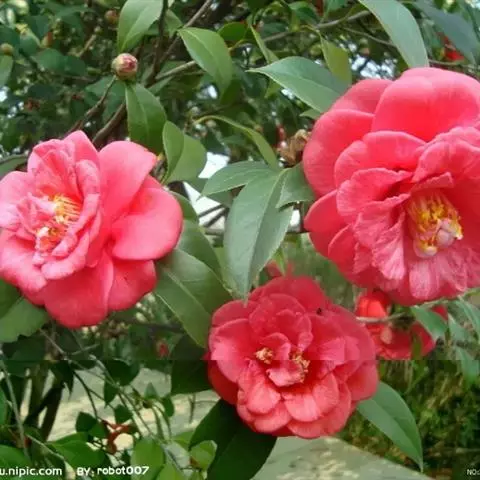 山茶为中国的传统园林花木,据资料记载,云南省昆明市近郊太华寺院内,有山茶老树一株,相传为明朝初年建文帝手植。昆明东郊茶花寺,有红山茶一株,为宋朝遗物,高达20米,每当花季,红英覆树,花人如株,状如牡丹。山茶树冠多姿,叶色翠绿,花大艳丽,枝叶繁茂,四季长青,开花于冬末春初万花凋谢之时,尤为难得。古往今来,很多诗人写下了赞美山茶的诗句。郭沫若先生曾用“茶花一树早桃红,白朵彤云啸做中”的诗句赞美山茶盛开的景况。