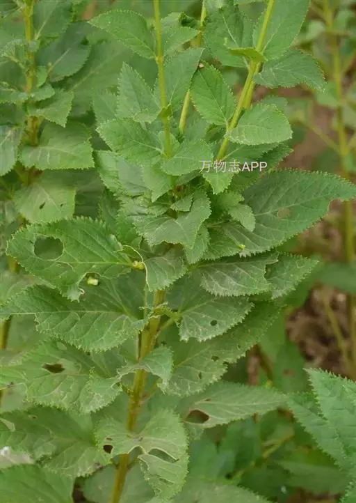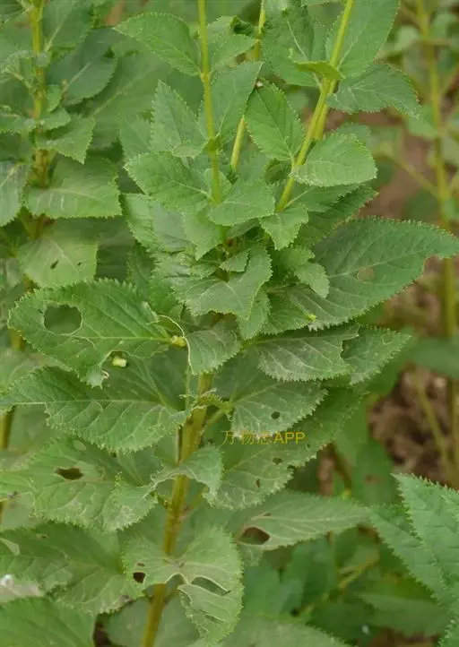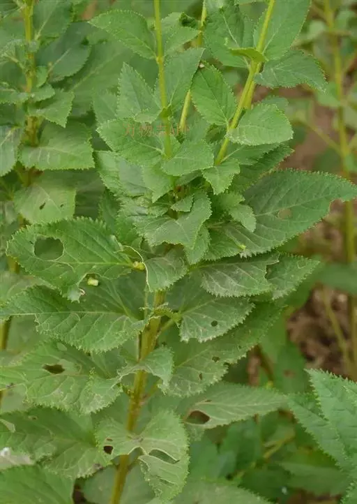 北玄参(学名:Scrophularia buergeriana Miq.)是玄参科、玄参属多年生草本植物。植株高大,100-150厘米。根肉质肥厚,呈圆柱形或纺锤形,淡黄色,有多数细根。茎直立,四方形。单叶对生,叶片长卵形,边缘有锐锯齿。聚伞花序,密集排列于枝顶端呈穗状。蒴果卵圆形。花期7-8月,果期8-9月。