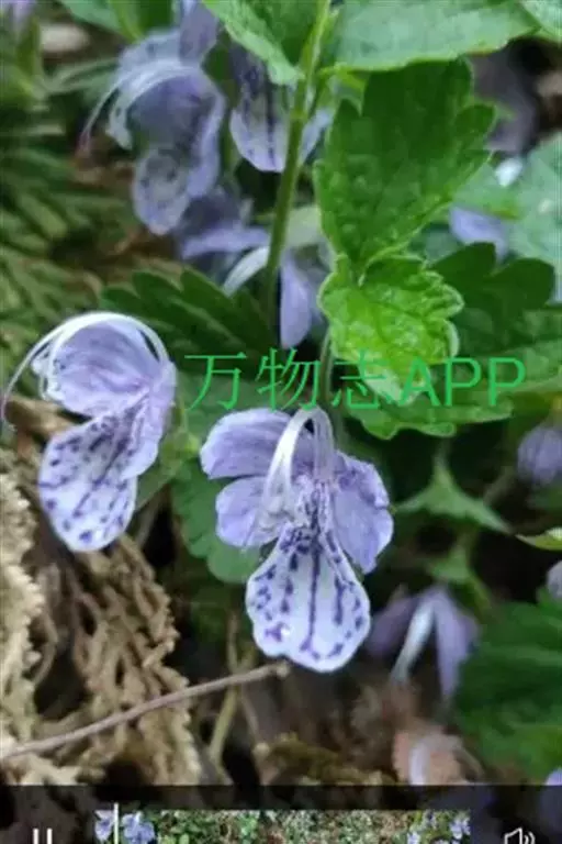 多年生草本,有时蔓生,仅基部木质化,高30-60厘米;茎方形,被向下弯曲的柔毛。叶片纸质,宽卵形至近圆形,长1.5-5厘米,宽1.5-4厘米,顶端钝,基部阔楔形至圆形,边缘具4-6对钝齿,两面均被柔毛及腺点,侧脉3-5对;叶柄长0.3-1厘米,被柔毛。单花腋生,有长1.5-3厘米的纤细花柄,近花柄中部生两枚锥形细小苞片;花萼杯状,长约6毫米,结果时略增大,两面均被柔毛和疏生腺点,5裂,裂片卵圆形至卵状披针形,有明显脉纹;花冠淡兰色,外面疏生细毛和腺点,喉部通常被柔毛,下唇中裂片较大,全缘,花冠管长6-9毫米;雄蕊4枚,与花柱均伸出花冠管外,子房密生绒毛。蒴果4瓣裂,果瓣倒卵形,无翅,表面被粗毛,不明显凹凸成网纹,长约4毫米,淡黄色。花果期5-9月。
