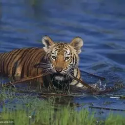 孟加拉虎是肉食目猫科豹属哺乳动物,又名印支虎。头圆、耳短、额阔,额部有数条黑色横纹,…